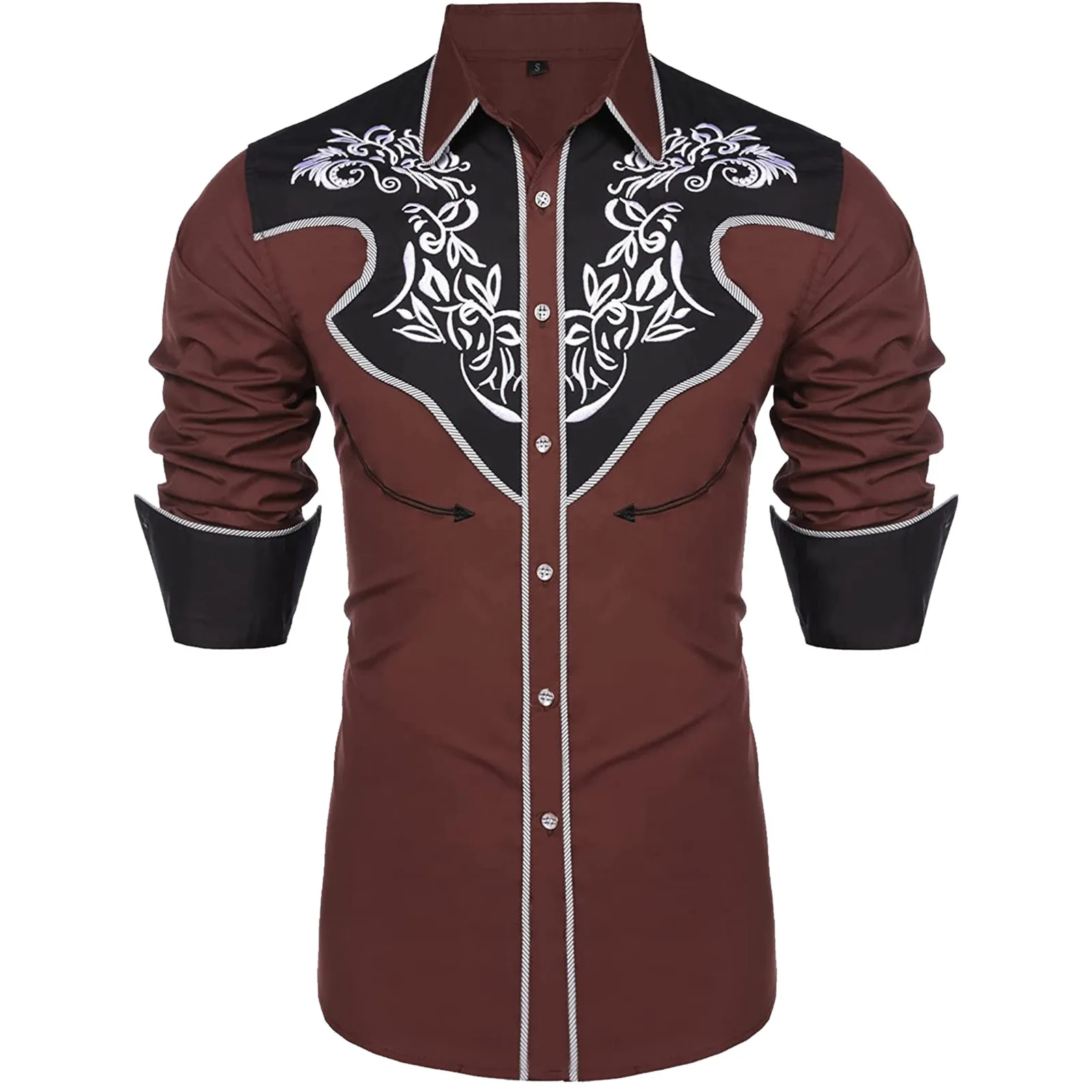 Men T Shirt Vintage Letter Print Tee Tops Men’S Western Denim Shirt Casual Long Sleeve Halloween Button Cotton Shirt рубашка