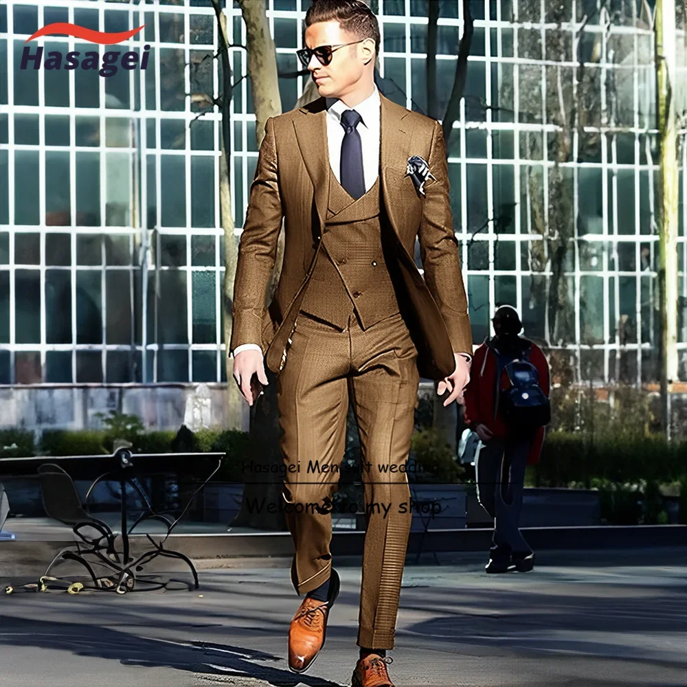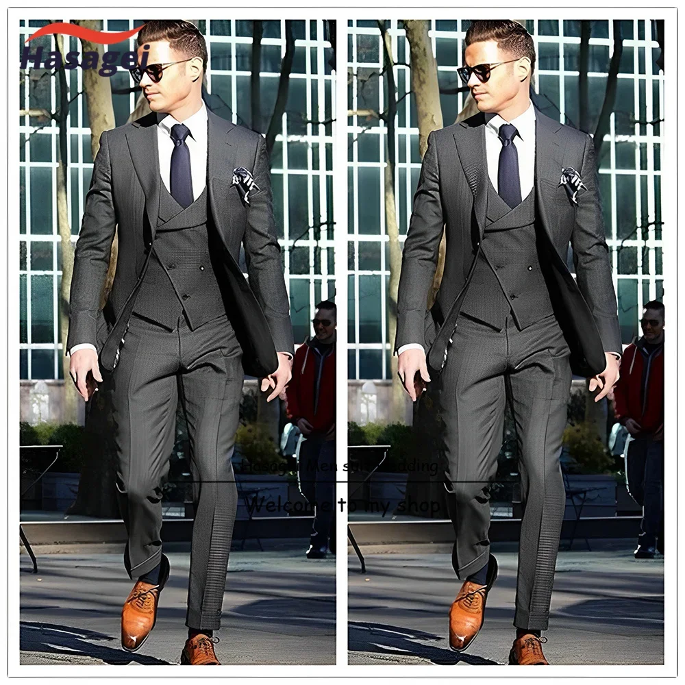 Men’s Business Suit Jacket Pants Vest 3-piece Set Formal Slim Fit Design Outfit Wedding Men’s Tuxedo Blazer for Male