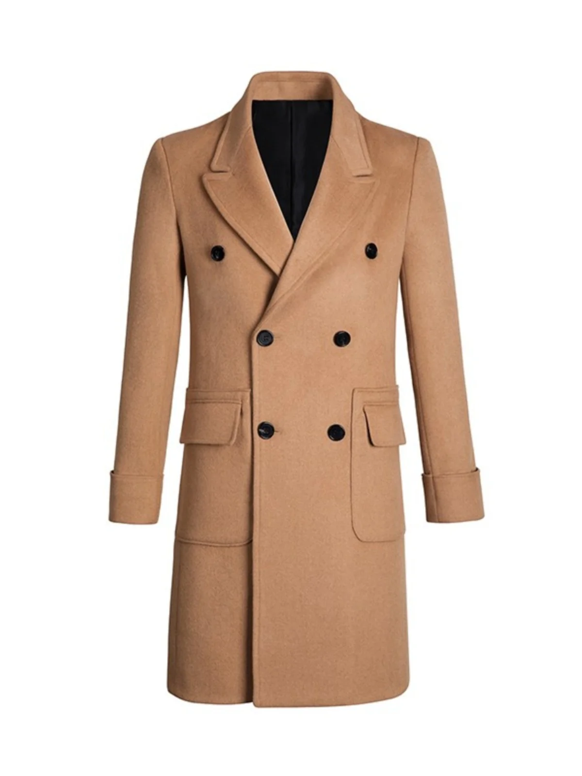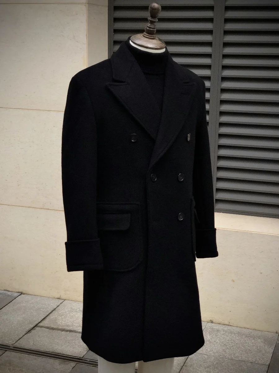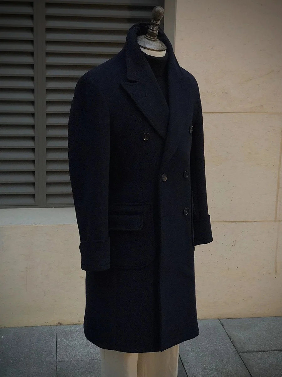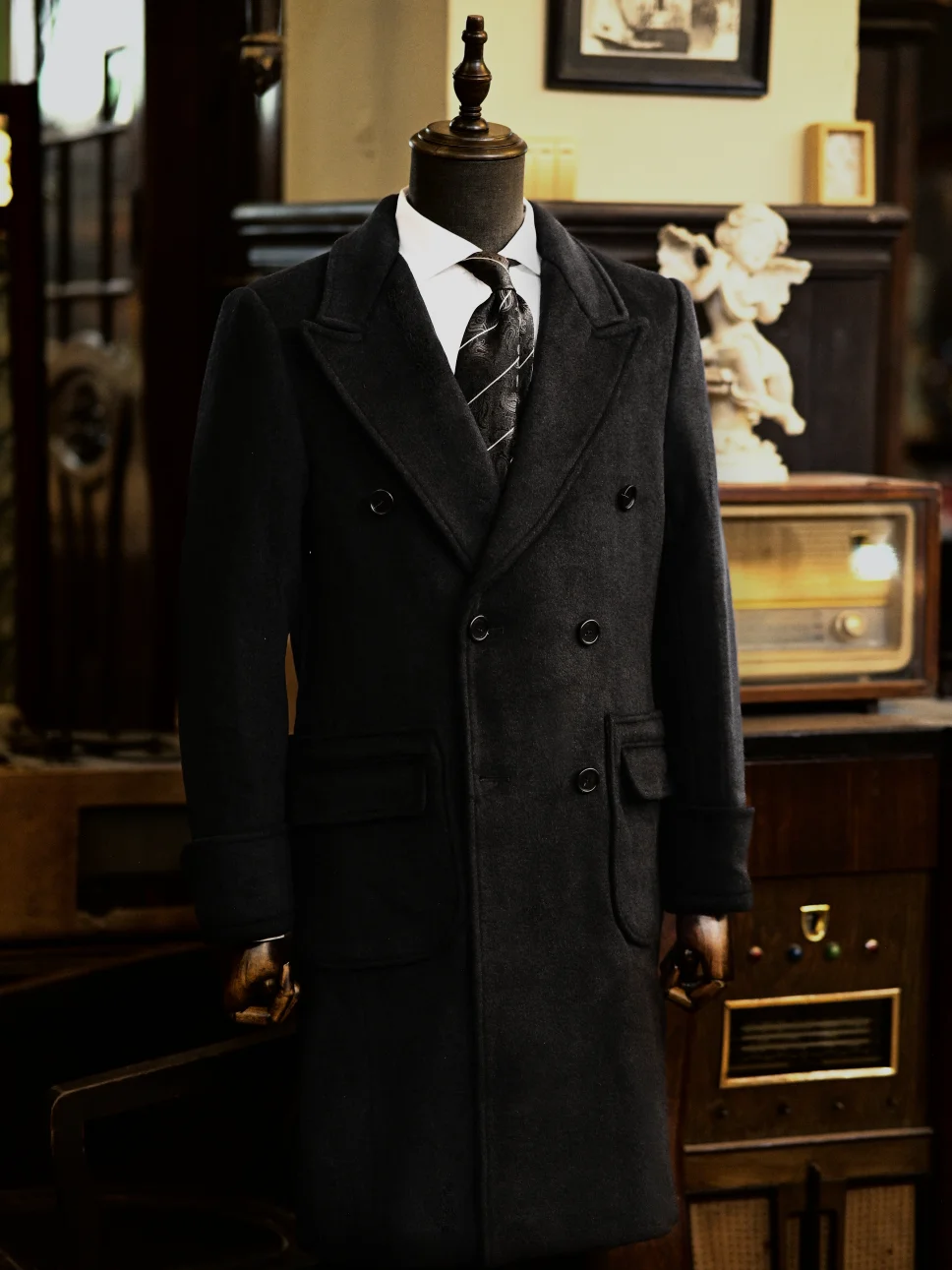 Men’s Double Breasted Polo Coat 100% Wool Winter Overcoat Warm Fashionable Outerwear for Cold Weather