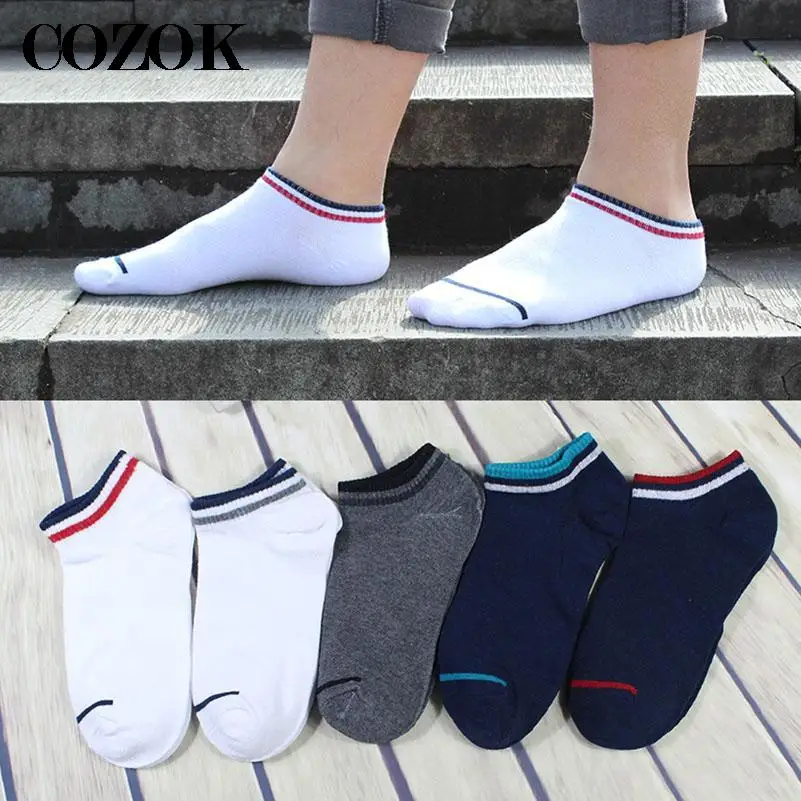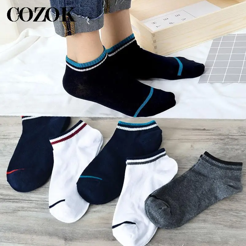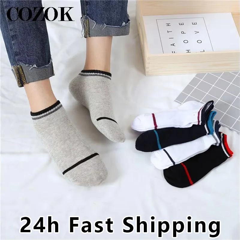 Mens Low Tube Anke Socks Cotton Fashion Solid Color Stripes Boat Socks Summer Male Trend Casual Breathable Short Sock Calcetines