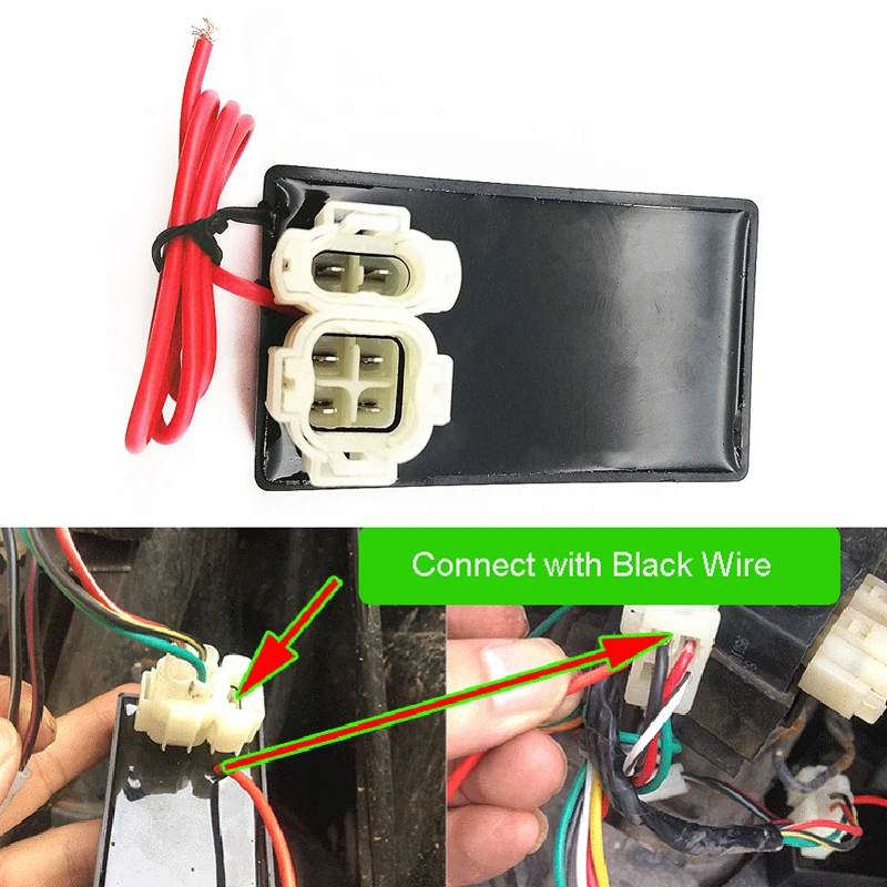 Buy a universal DC igniter with a wire. You don’t need to destroy the original motorcycle’s wiring. Just connect the red wire on the universal igniter to the black wire plug of the flasher, the modification is complete. The stop switch is also works as usual.