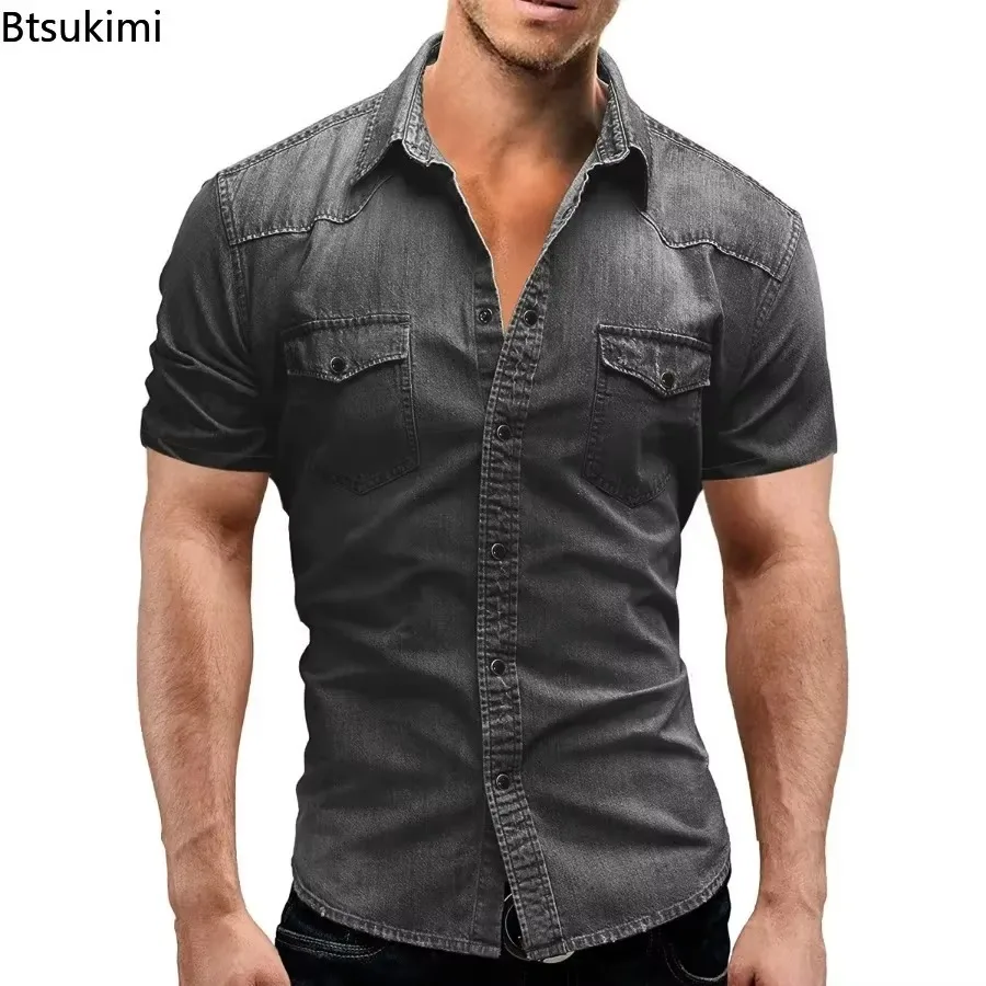 New 2025 Men’s Elastic Slim Denim Shirts High Quality Short Sleeve Casual Cotton Jean Shirts Spring Summer Fashion Men Clothing