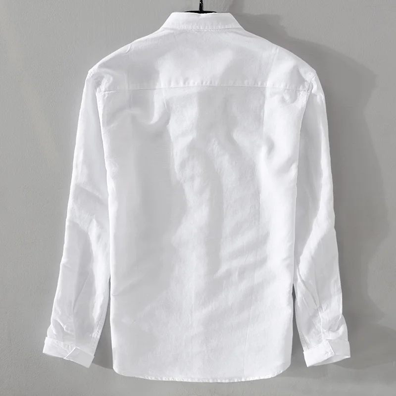 New style sky blue shirt men brand linen solid fashion long sleeve square collar cotton shirts for men camisas chemise
