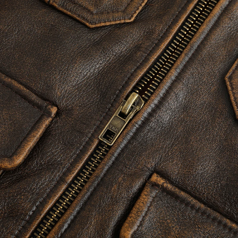 New Top-Layer Cowhide Leather Jacket Men’s Four Seasons Motorcycle Leather Jacket Slim-Fit Lapel Multi-Pocket Jacket
