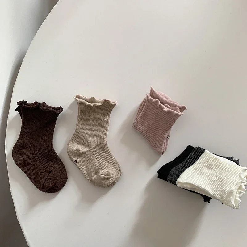 Newborn Cute Ruffle Lace Cuff Socks Infant Baby Girls Ankle Socks Spring Autumn Children Kids Soft Warm Ribbed Cotton Floor Sock