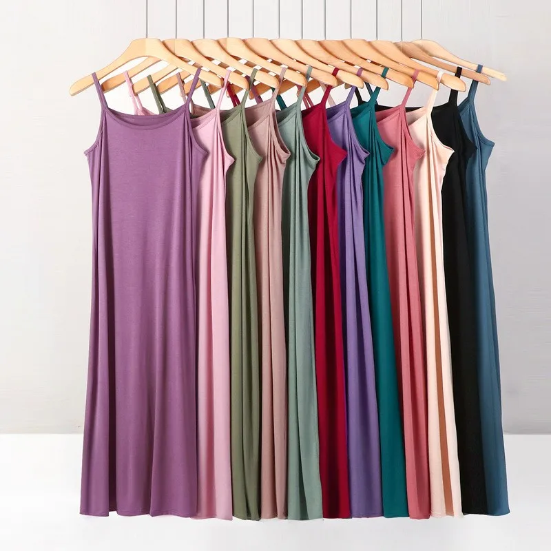Plus size spring and summer versatile slim long inner nightgown suspender modal cotton solid color bottoming dress