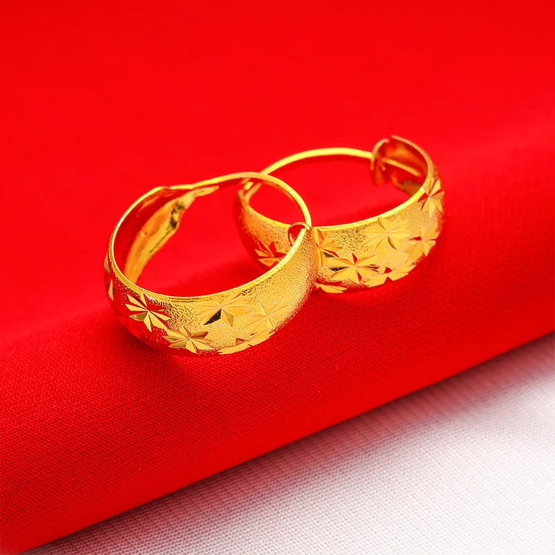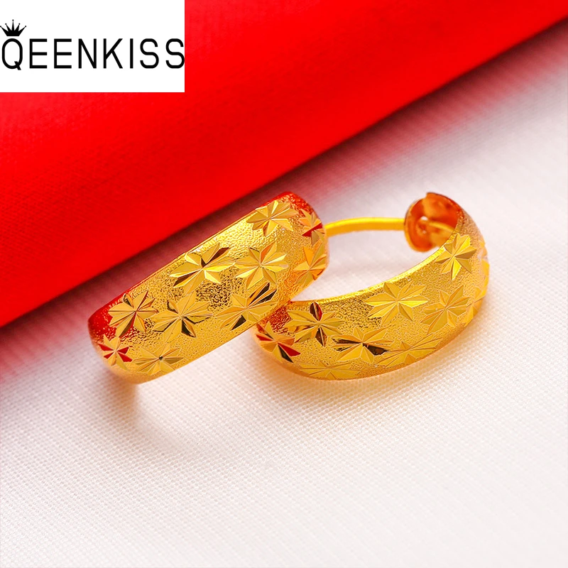 QEENKISS Gold Vintage Star Wide Round Hoop Earring For Woman Birthday Wedding Party Christmas Mother Girlfriend Lady Gift EG549