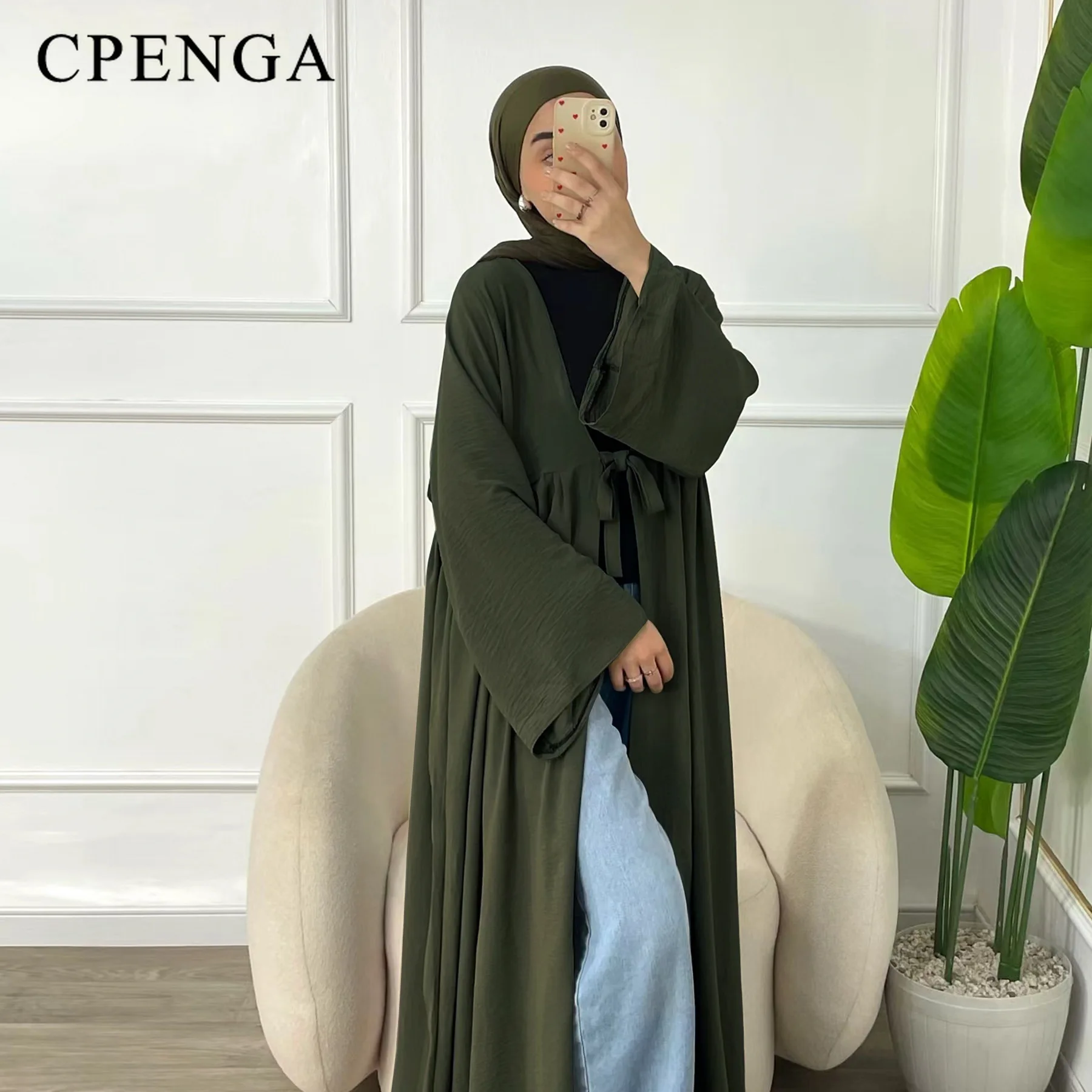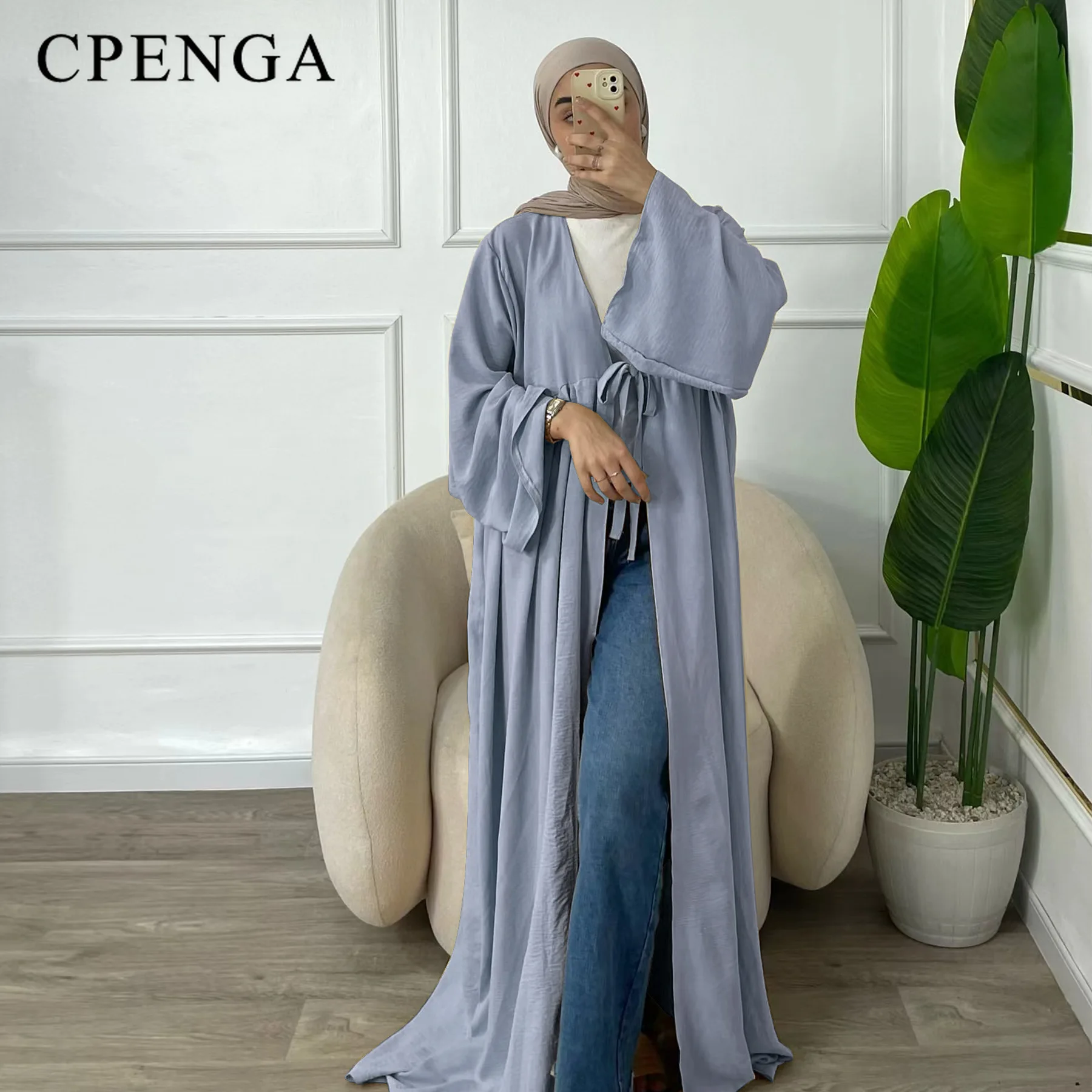 Ramadan Dubai Open Abaya Dress for Women Elegant Arabic Women Muslim Modest Cardigan Clothing Islamic Party Solid Turkey Robe