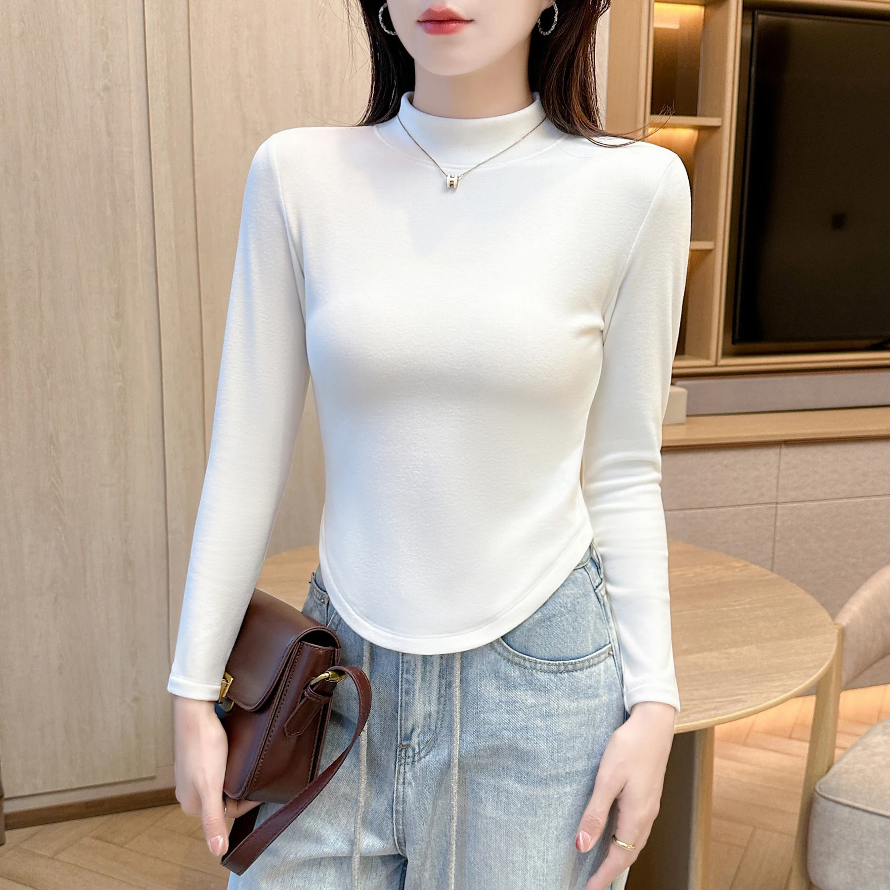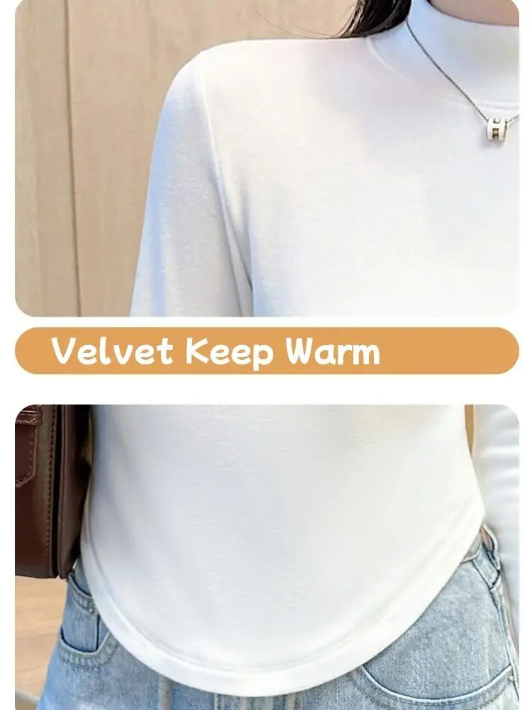 Solid Color Turtleneck Velvet Bottom Shirt Women Inside Long Sleeve Autumn and Winter Simple Warm Body Shirt Tops