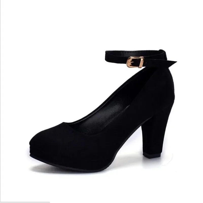 Spring Women Pumps Flock Sweet Thick High Heels Ankle Strap Female Platform Classic Round Toe Dress Cute Shoes Ladies Footwear