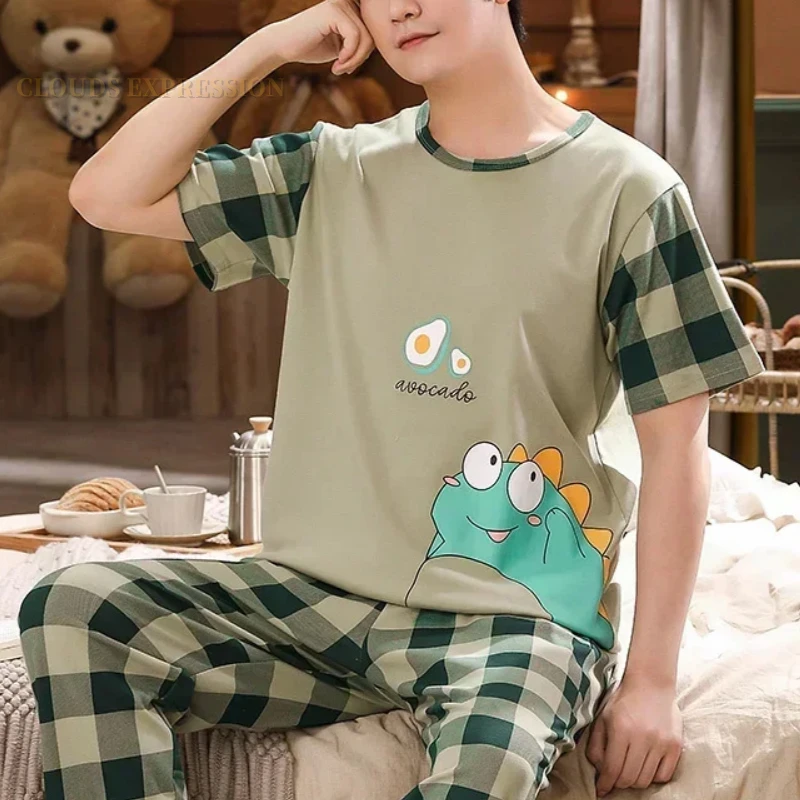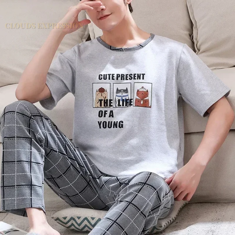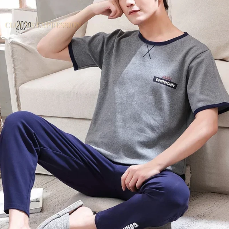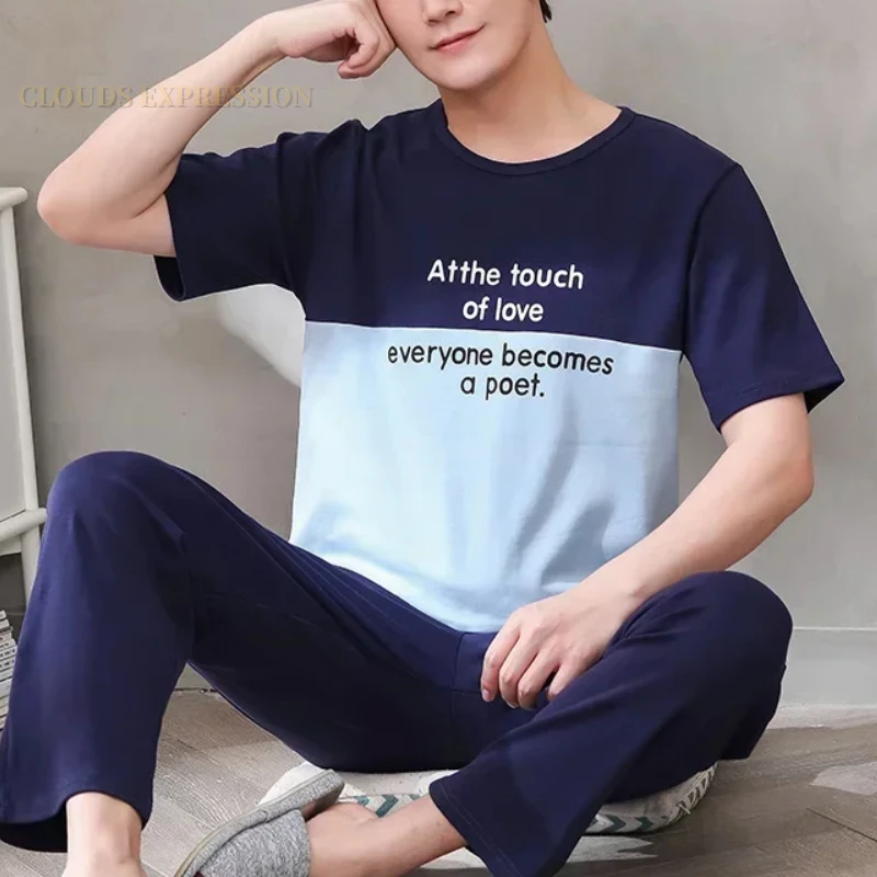 Summer Knitted Pj Short Sleeved Men’s Pajamas Sets Male Pajama Set Letter Pajama For Men Sleepwear Suit Homewear Size XXXL1264