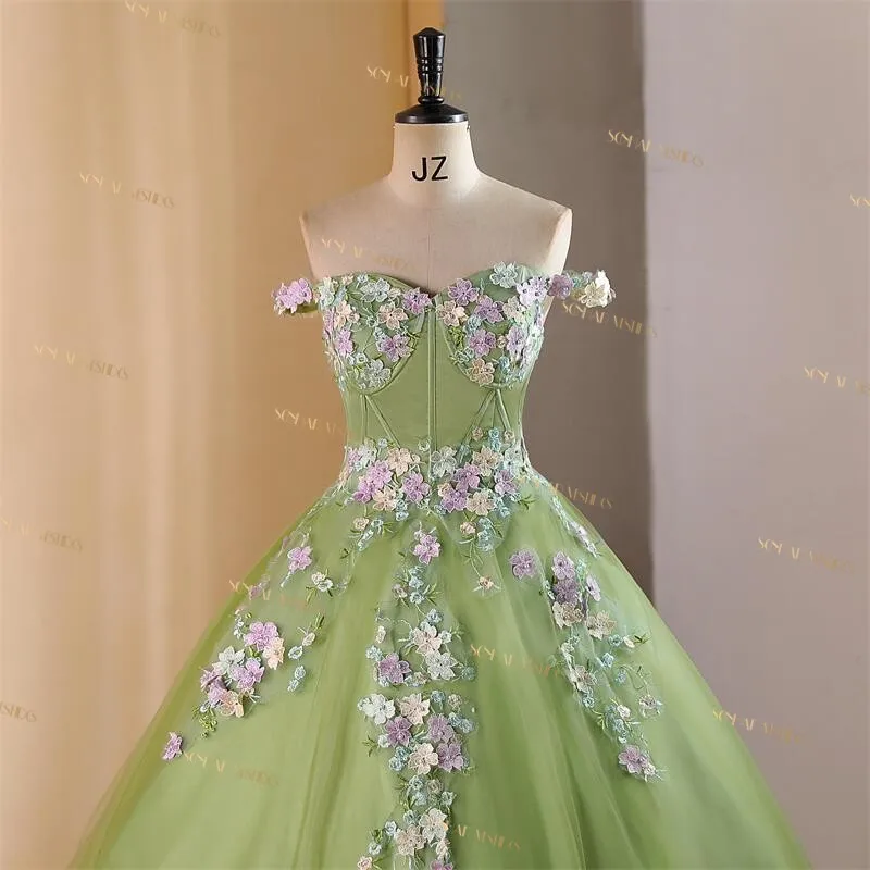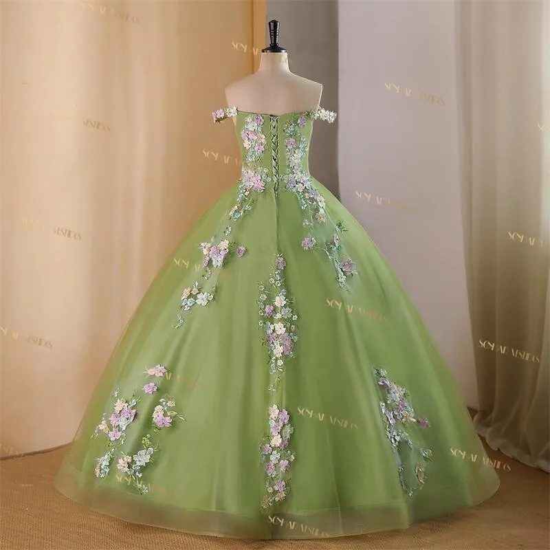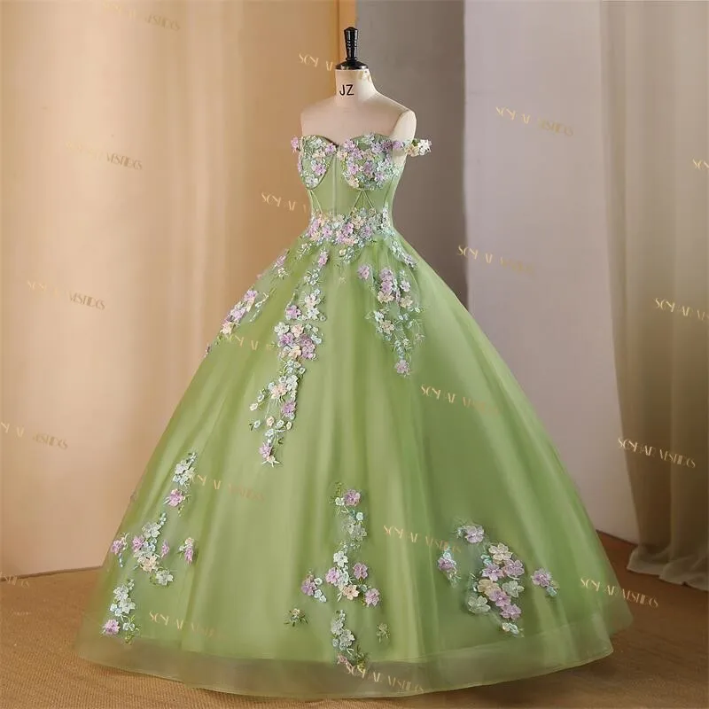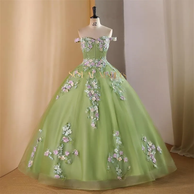 Sweet Birthday Party Dress Quinceanera Dresses Elegant Flower Prom Gown Graduation Formal Robe De Ba Sonhar Vestidos Real Photo