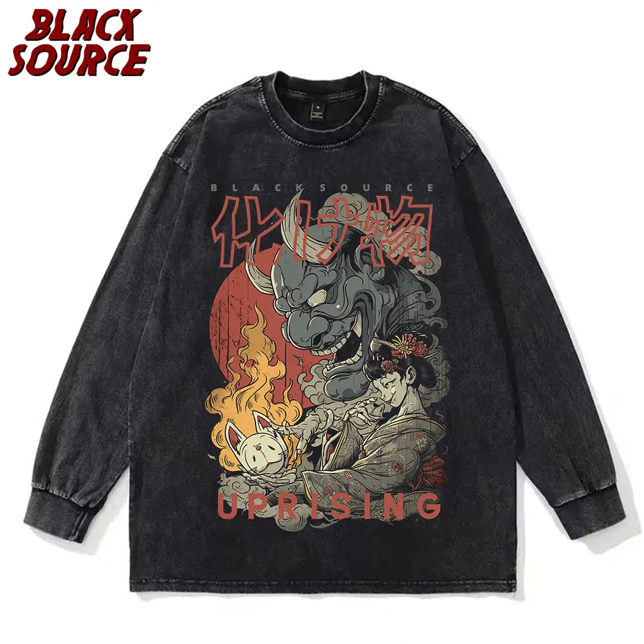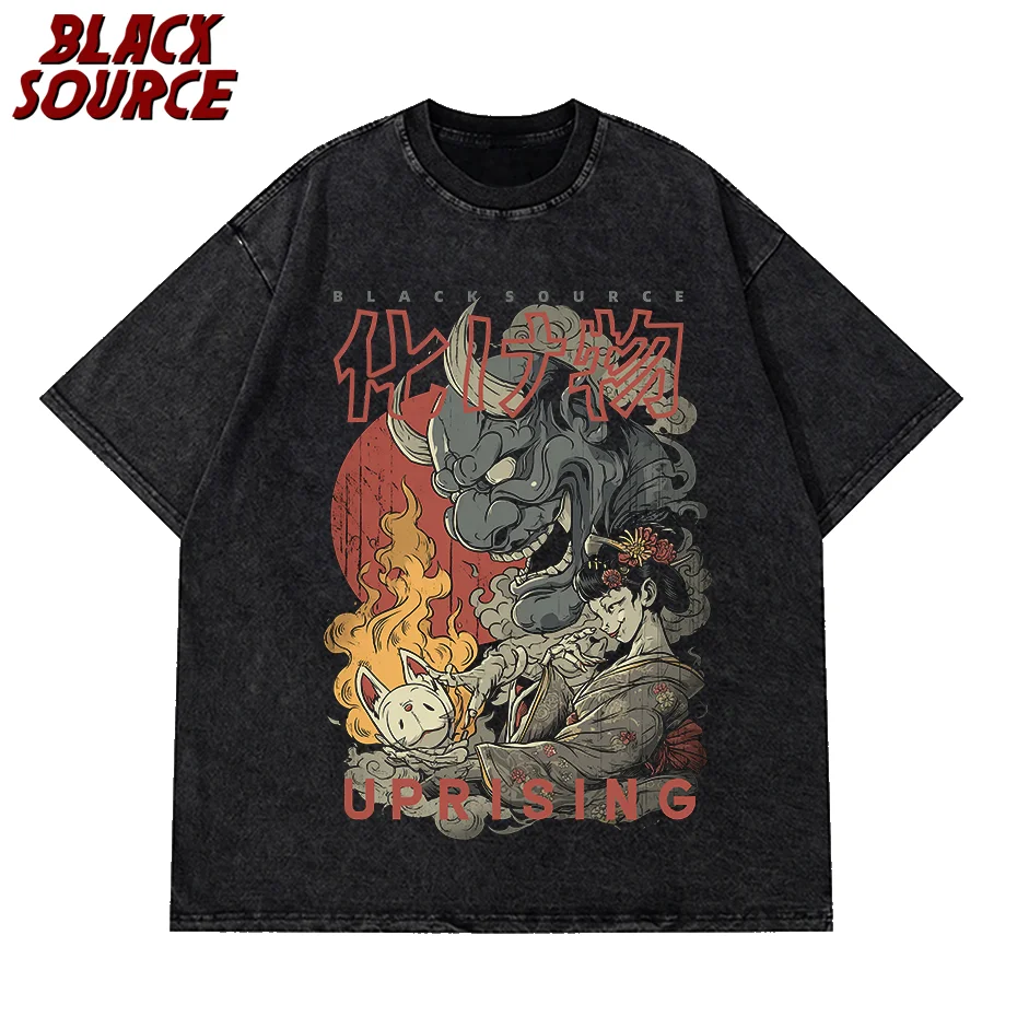 T184 Japanese T-Shirt for Men and Women, Casual Comfortable T-Shirt with Vintage Cartoon Print, Short Sleeve Round Neck T-Shirt