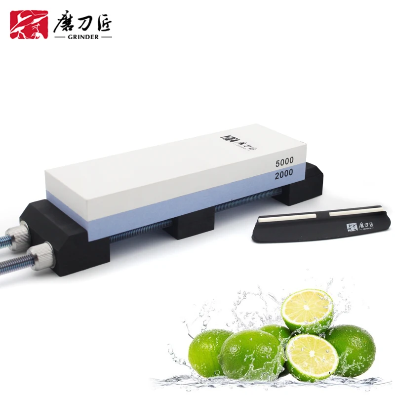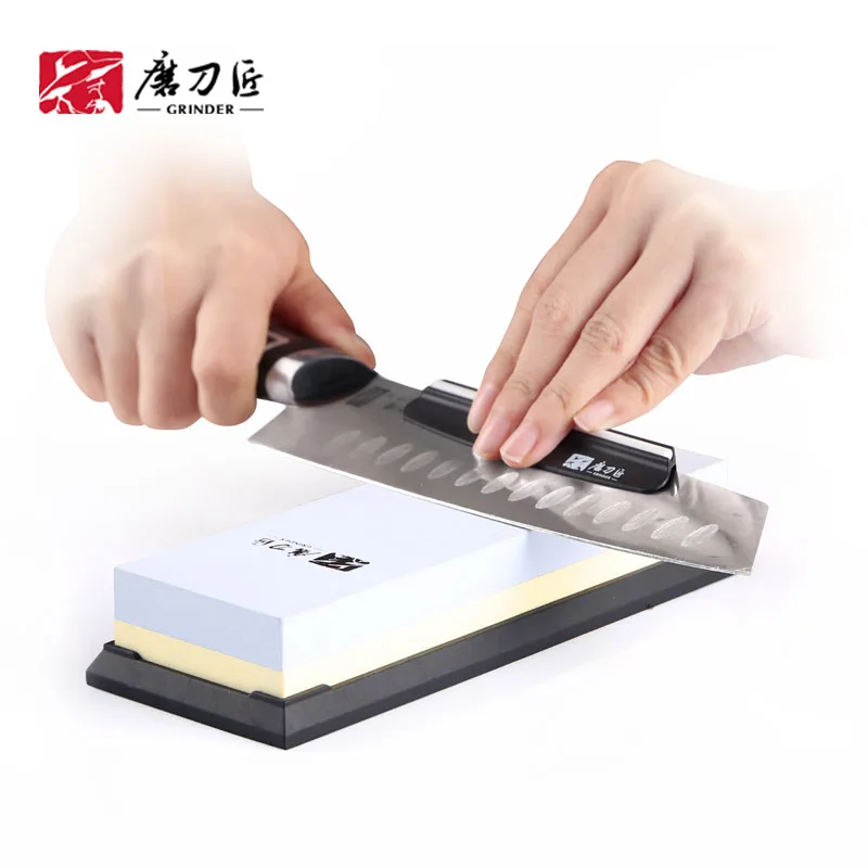 1. Soak the stone in the water for 5 minutes, and then put it on a steady platform. Sharpening the knives with one or two steps is decided by the degree of blunt tool.