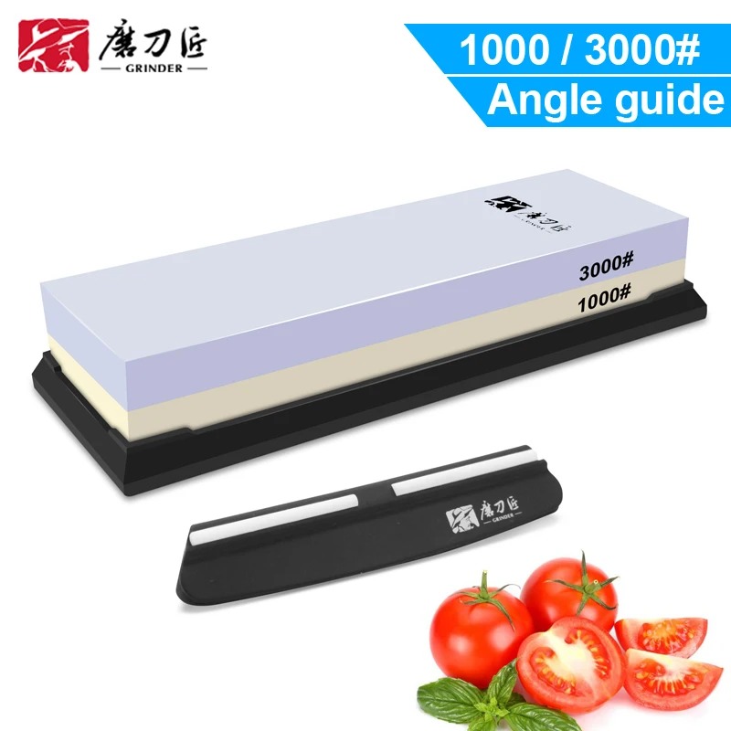 1.Soak the stone in the water for 5-15 minutes, and then put it on a steady platform. Sharpening the kniveswith one or two steps is decided by the degree of blunt tool.