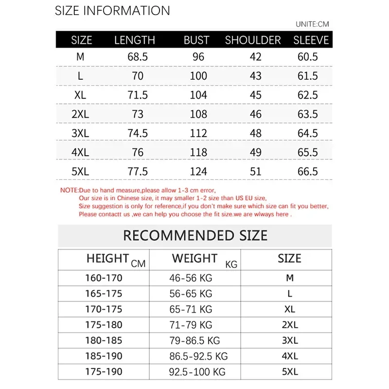 Chinese size S-5XL