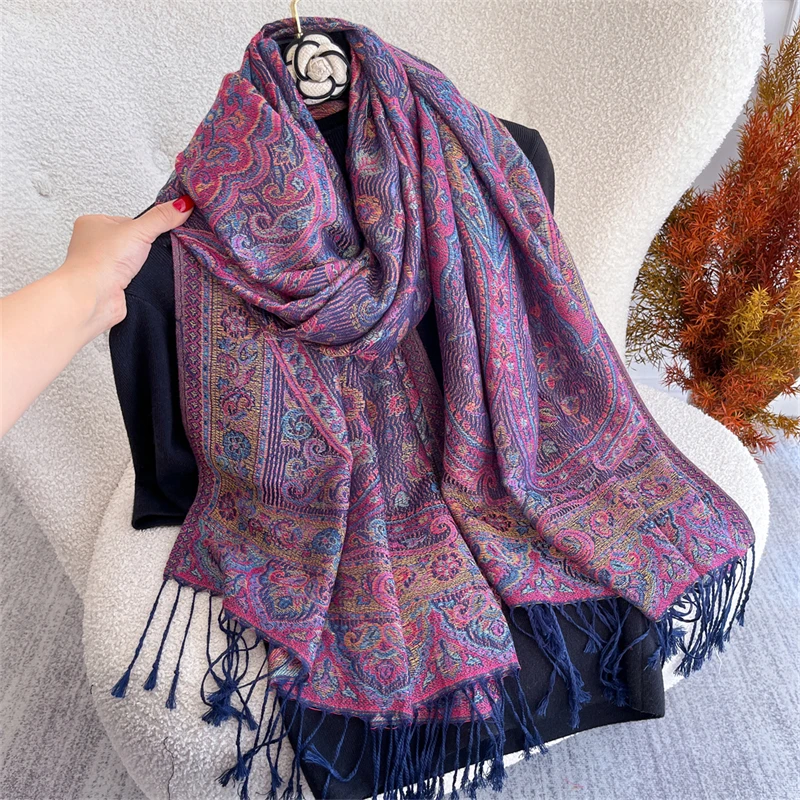 Thicken Embroidery Cashmere Winter Scarves Women Pareo Cape Warm Muslim Shawl Chunky Headscarf Wrap Ladies Elegant Poncho Turban