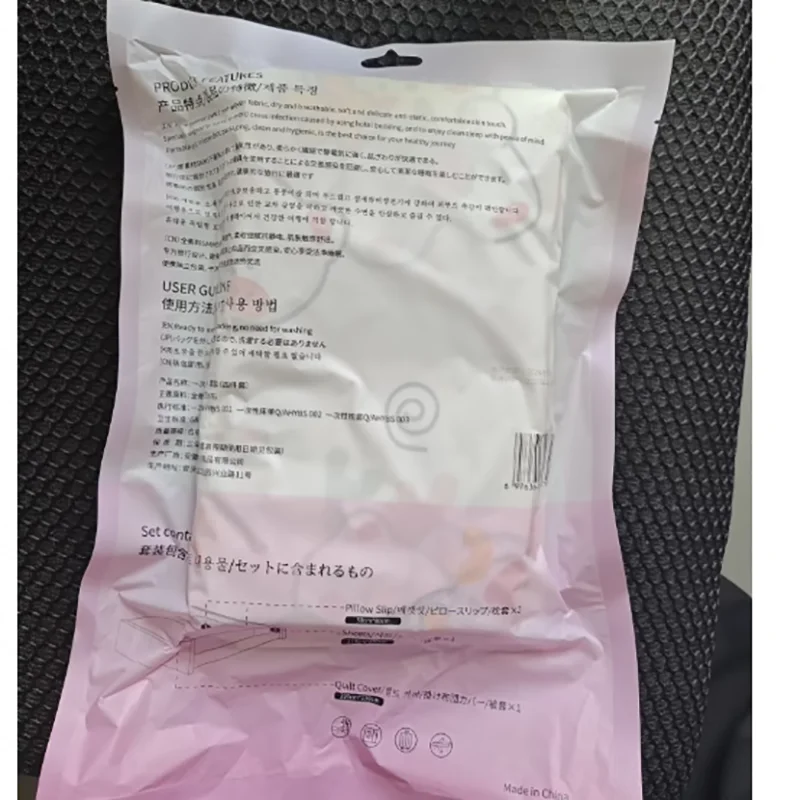 Travel 4pcs/set for 2 person —include: Pillowcase: 50*80cm(2pcs); Bed sheet: 220*230cm(1piece); Quilt cover: 220*230cm(1piece).
