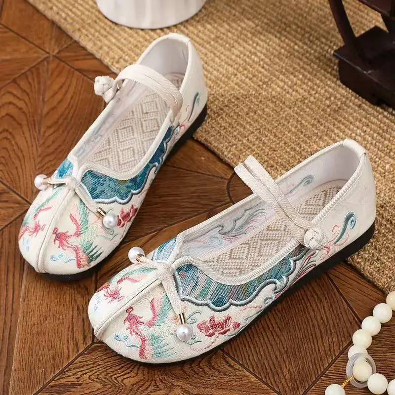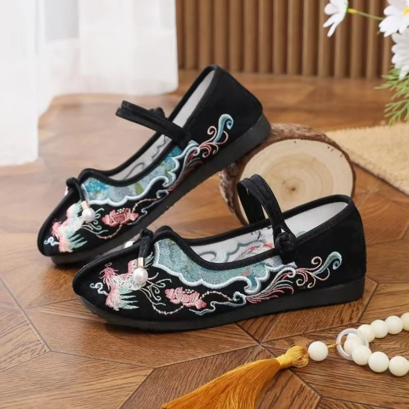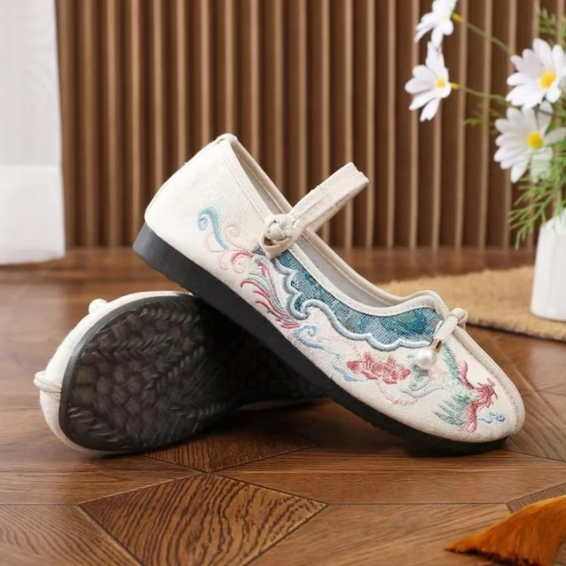 2024 New Women's Chinese Traditional Flat Sole Embroidered Shoes Soft Sole Round Toe Mary Jane Shoes Ethnic Style Hanfu Shoes