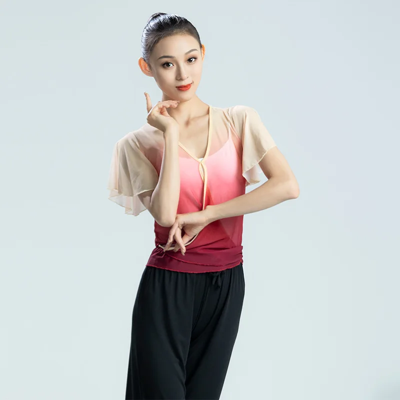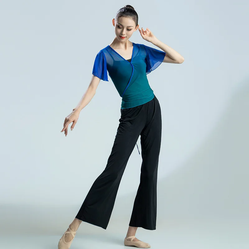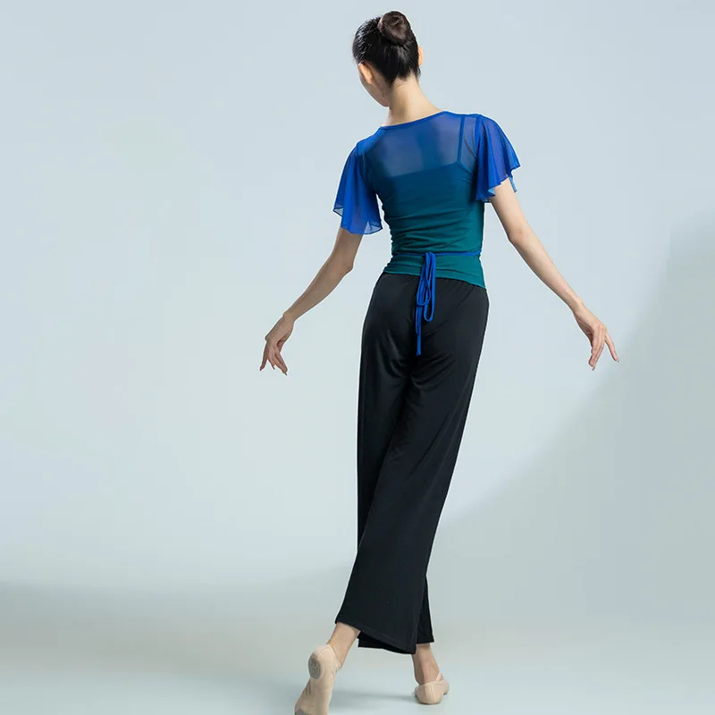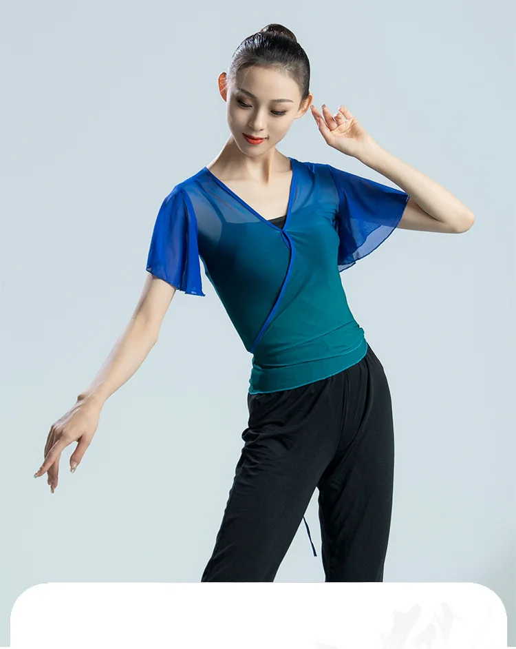 Women Classical Dance Practice Blouse Slim Basic Train Clothes Adult Gauze Top Ruffles Sleeve Ballet Teacher Stage performance