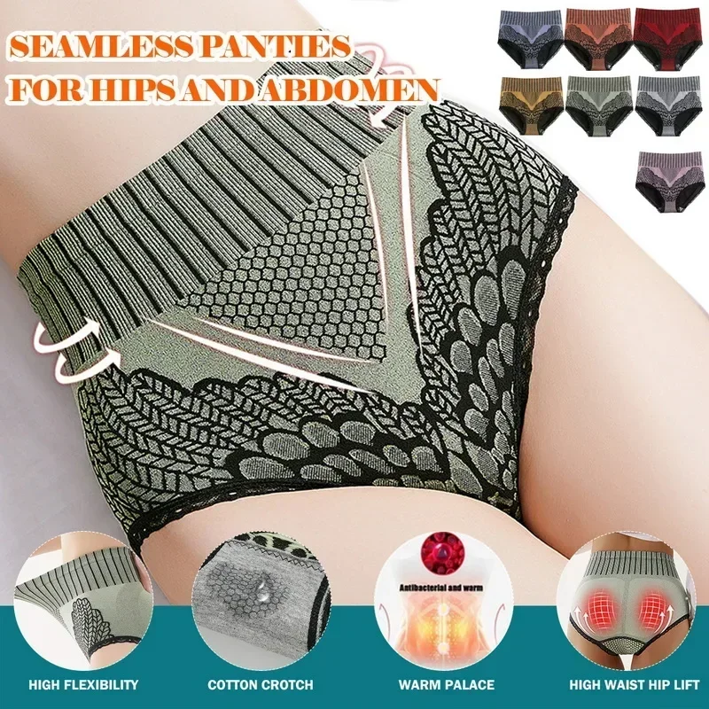 Female Waist Trainer Slimming Underwear Briefs Flower Print Seamless Nylon Stretchy Tummy Control Panties for Women Daily Wear