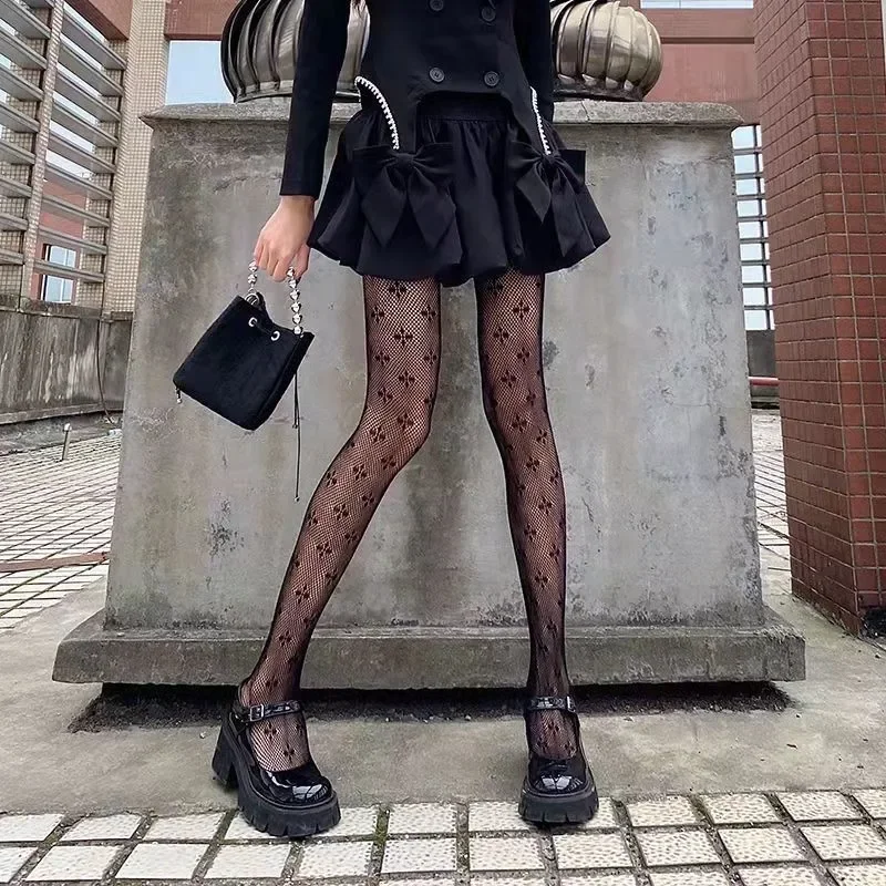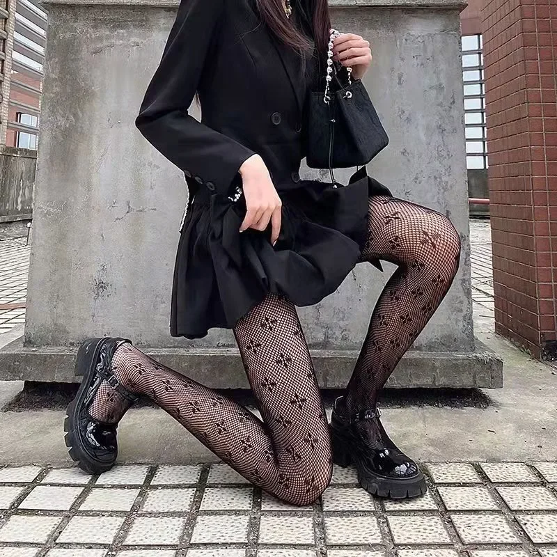 Women Sexy Retro Gothic Lolita Cross Print Club Tights Goth Cosplay JK Girls Long Nylon Socks Body Stockings Fishnet Pantyhose