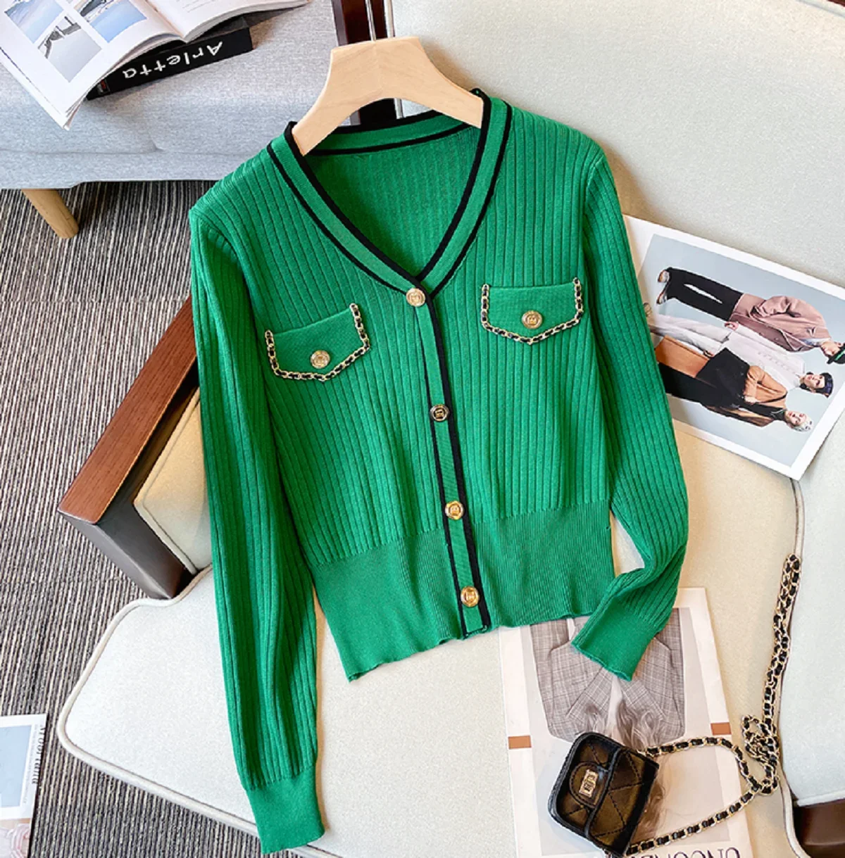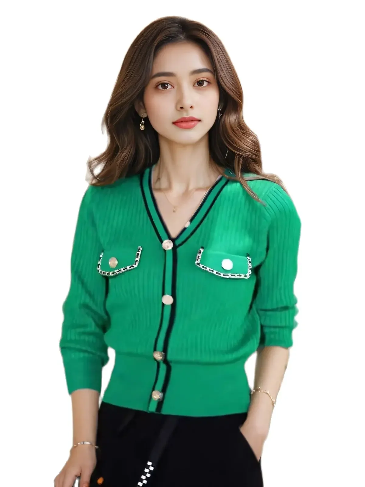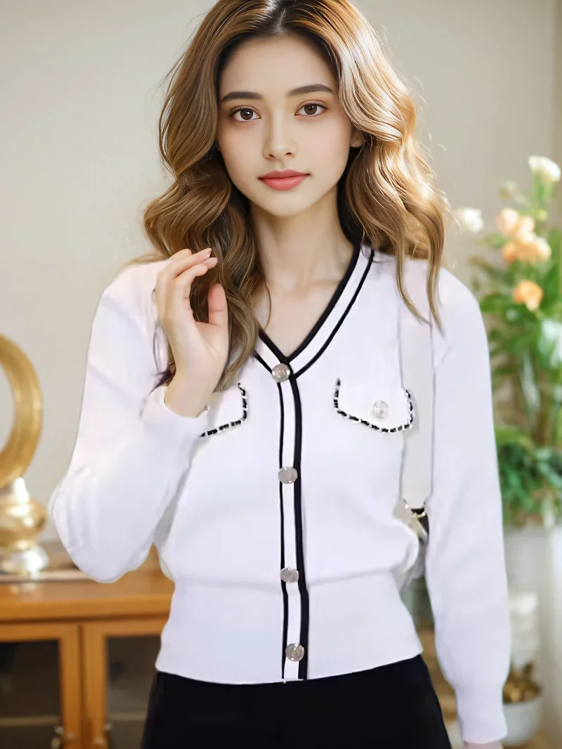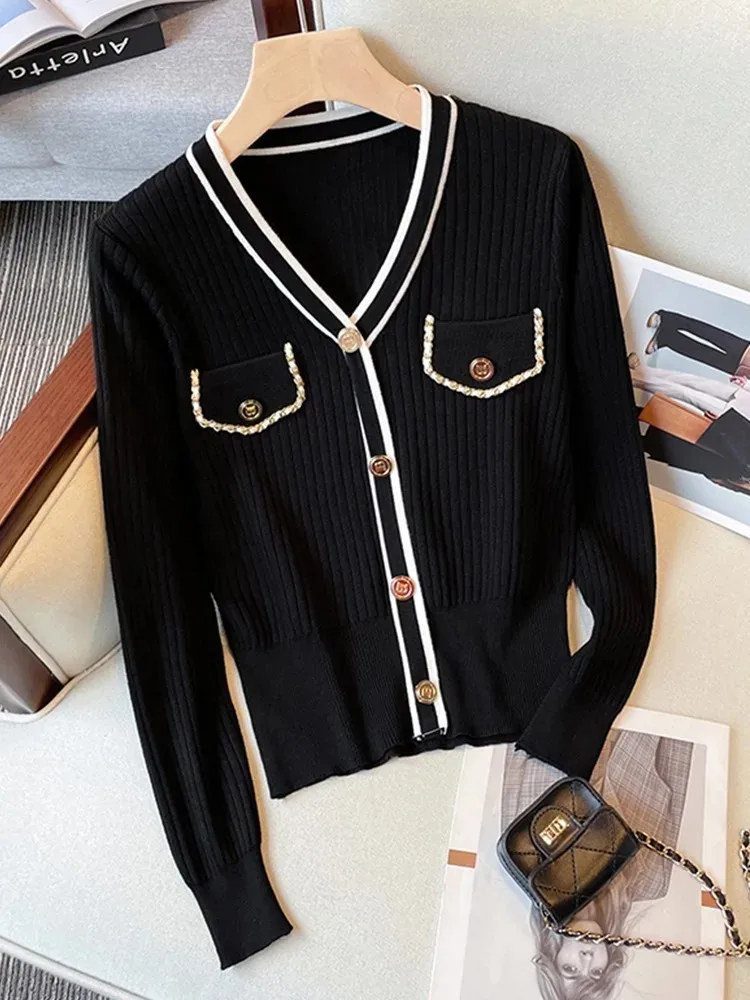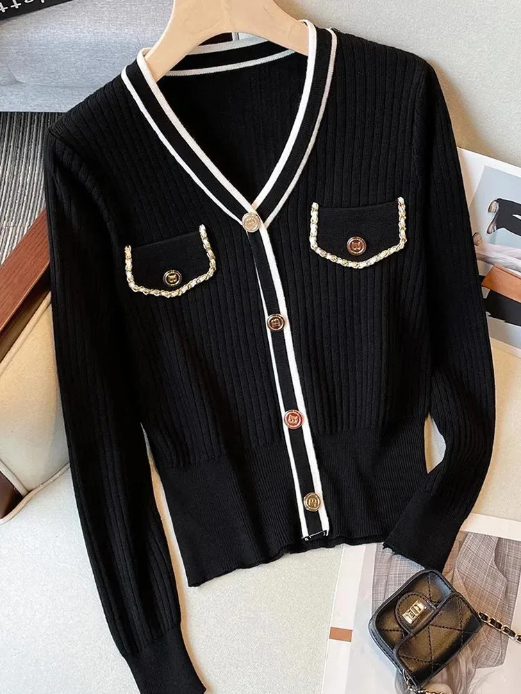 Women Sweater Long Sleeve Button Knitted V Neck Top Korean Fashion Spring Summer Autumn 2025 Basic Female Clothing Jumper